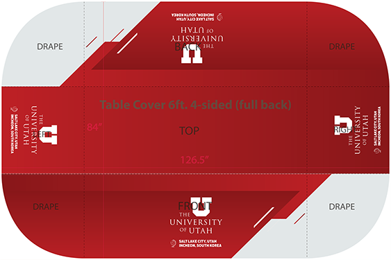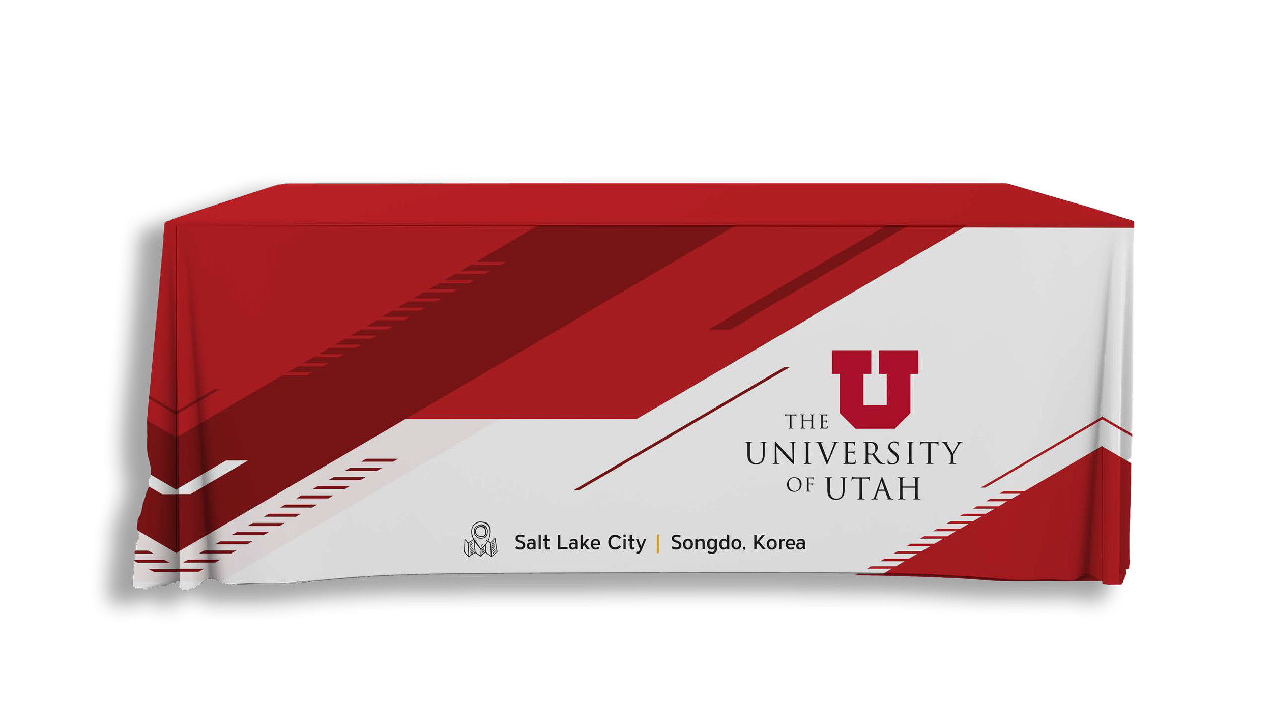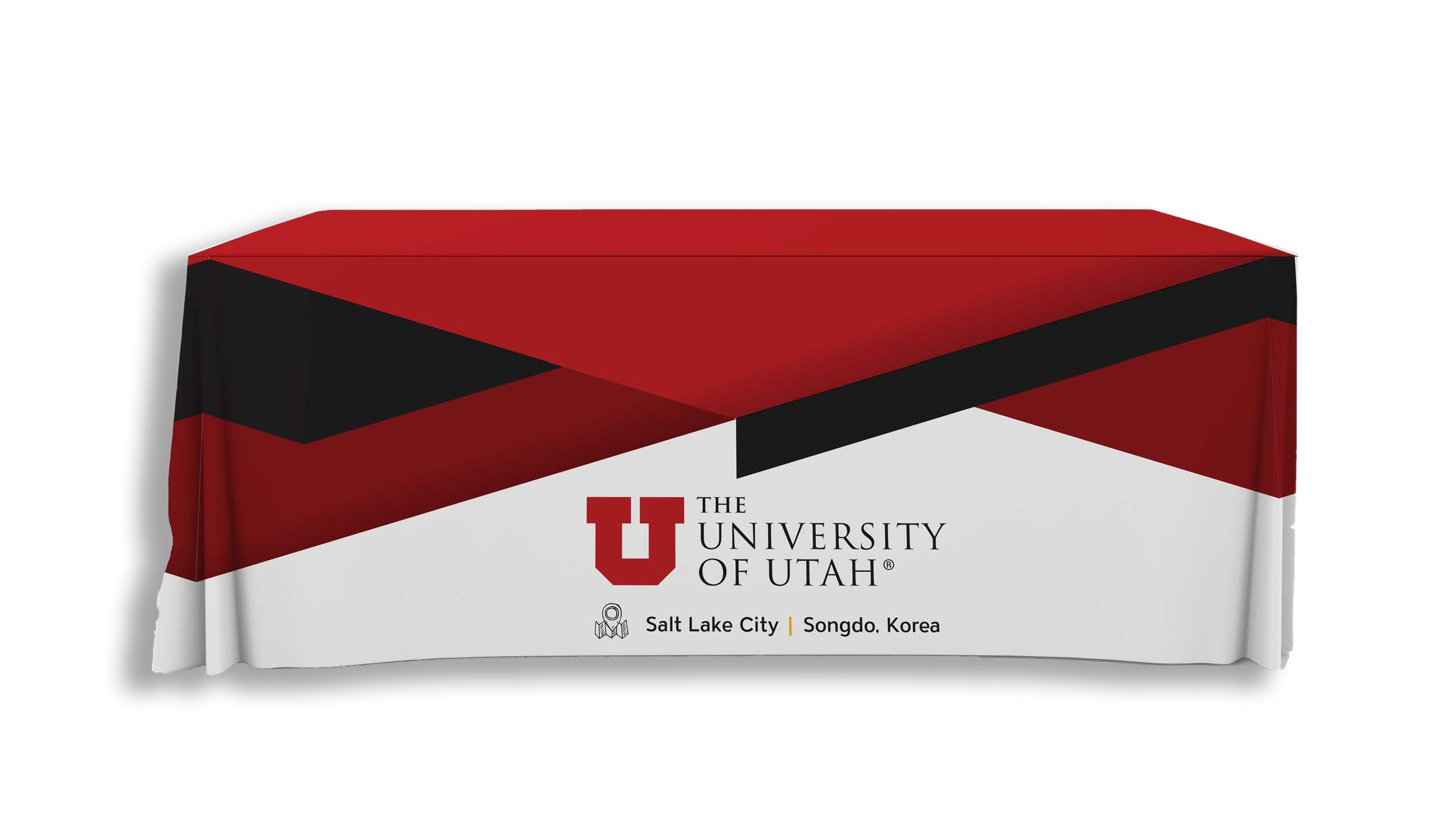 The Admissions Tablecloth and Runner will be used at college fairs and other college events to help identify and distinguish the University of Utah from other schools that might be at the college event.