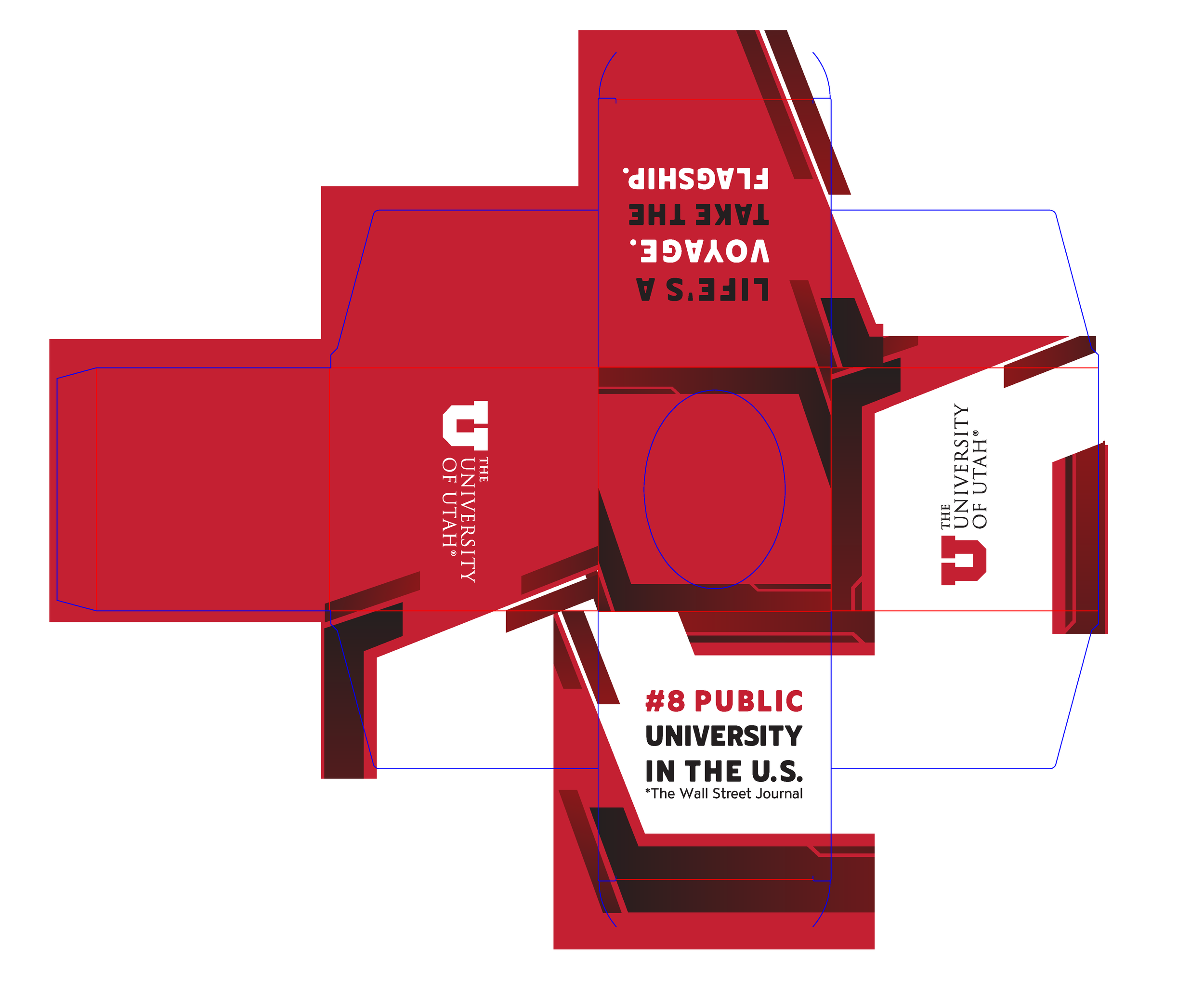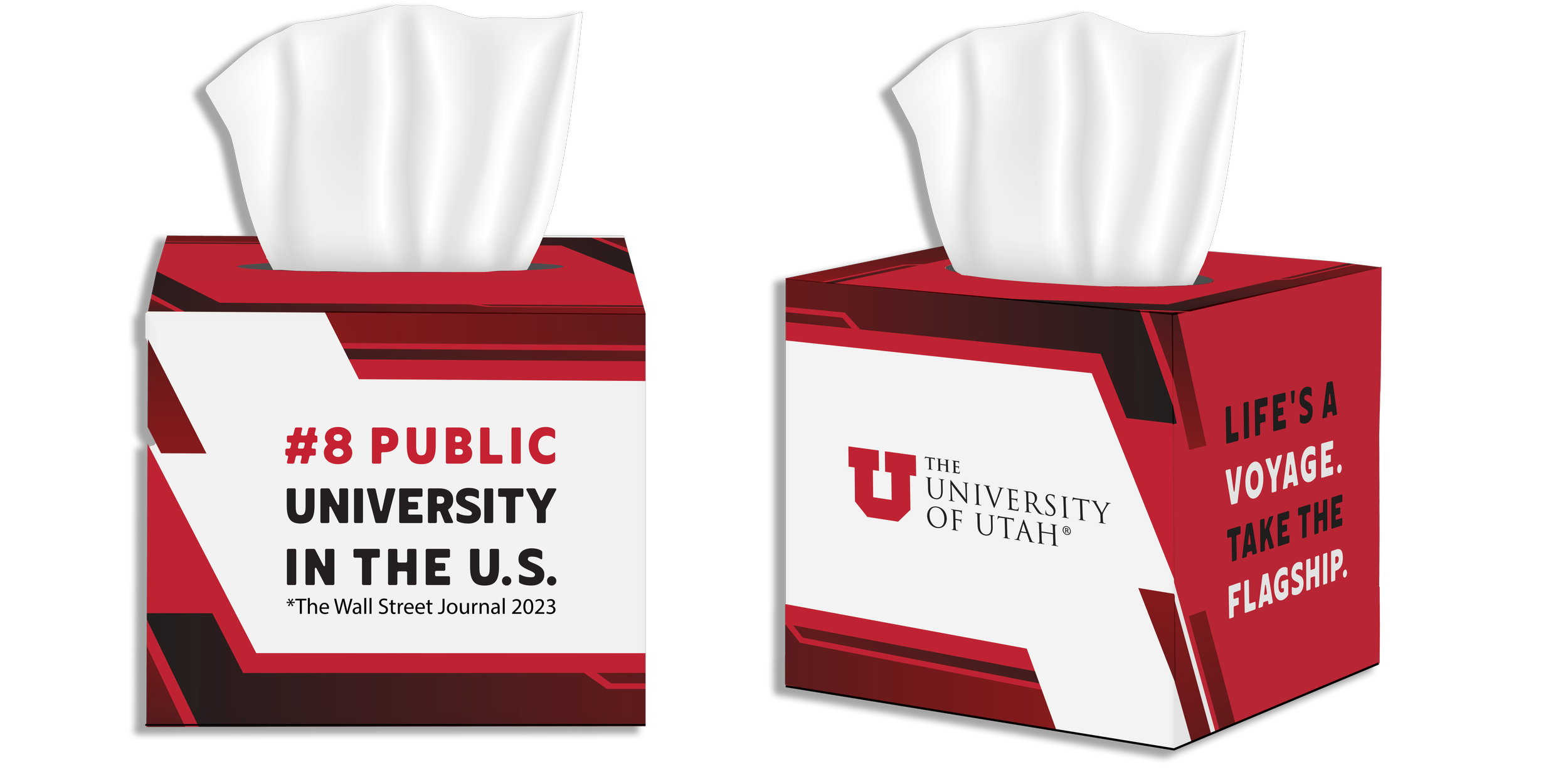 These tissue boxes went out to all the high school counselors in Utah. The box itself is a cover that can go over other standard tissue boxes so the design/box can last longer. The project was to recognize the counselors’ hard work and provide some swag to display for potential students.