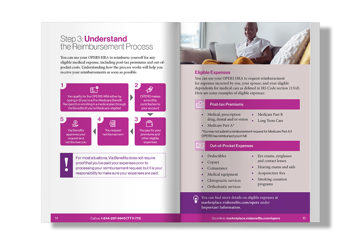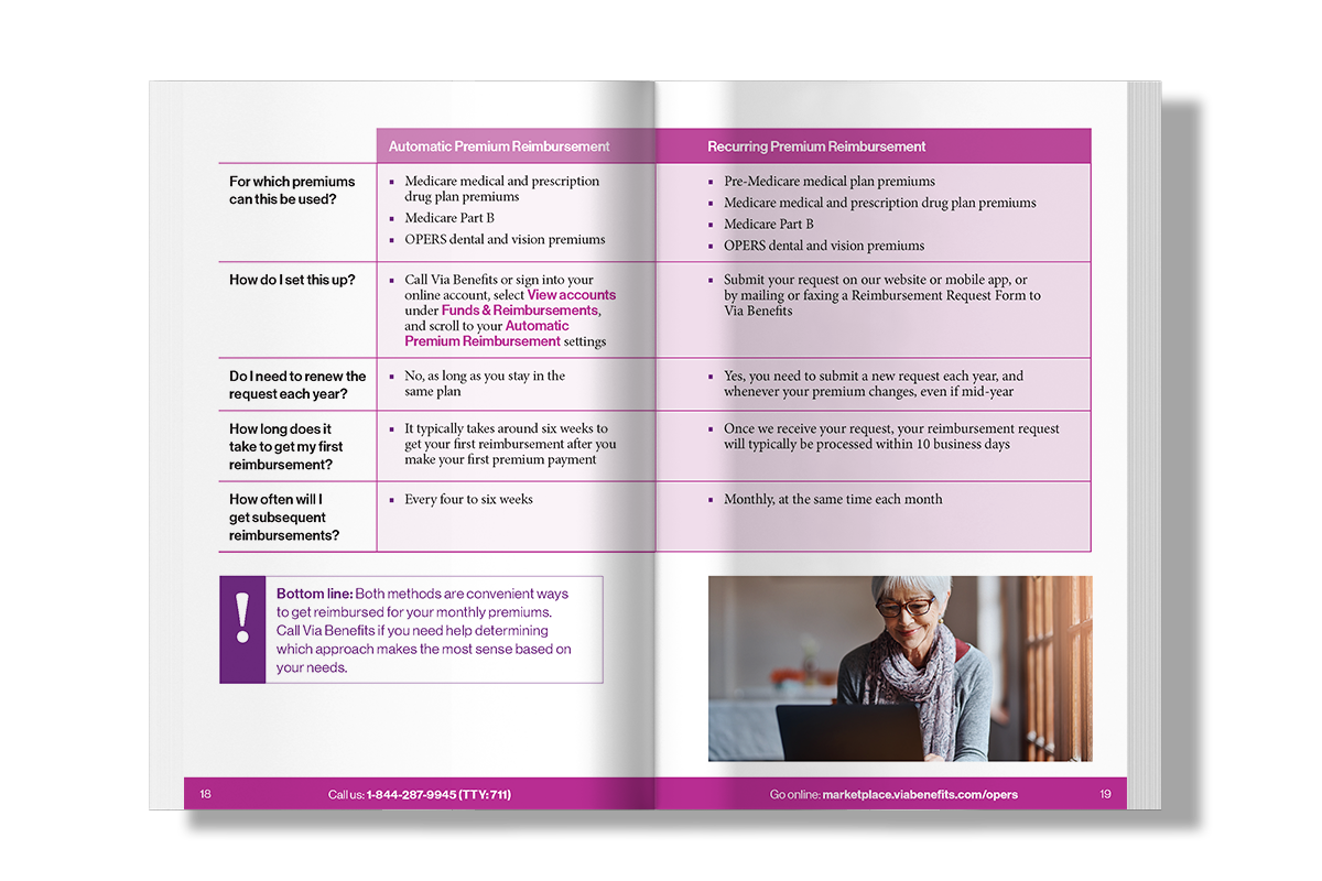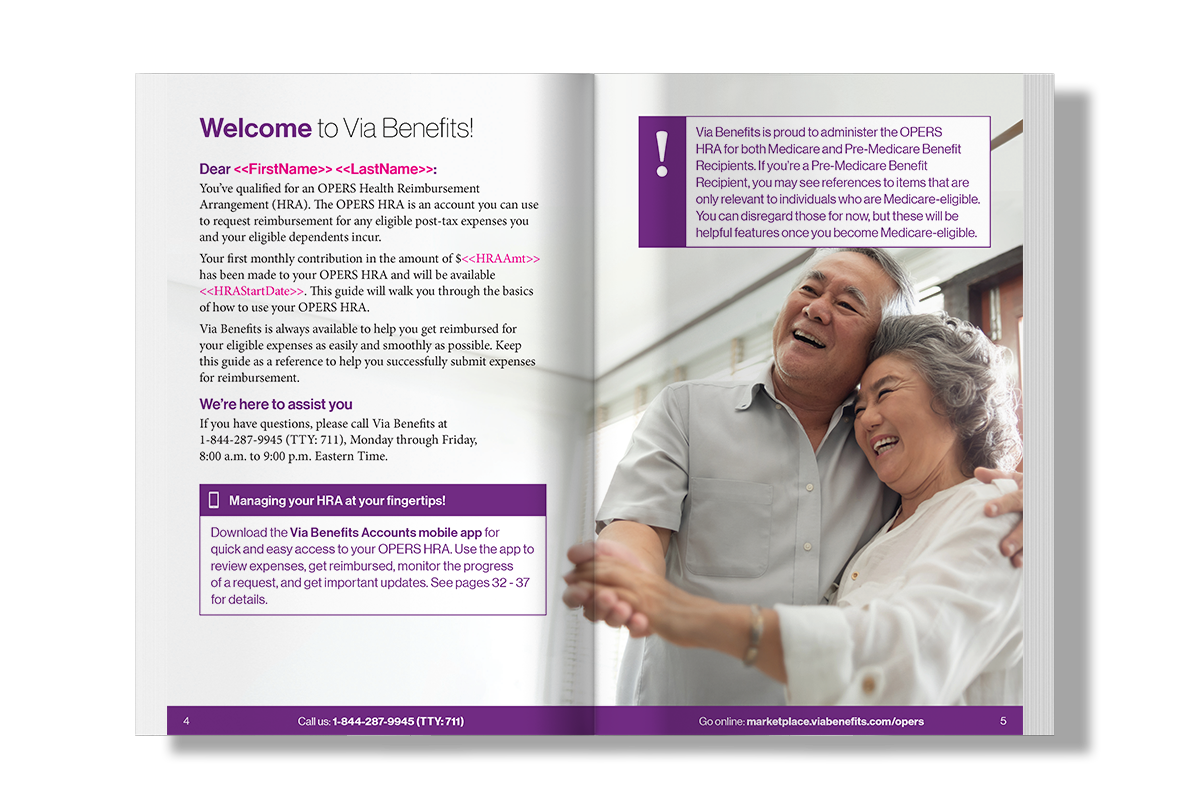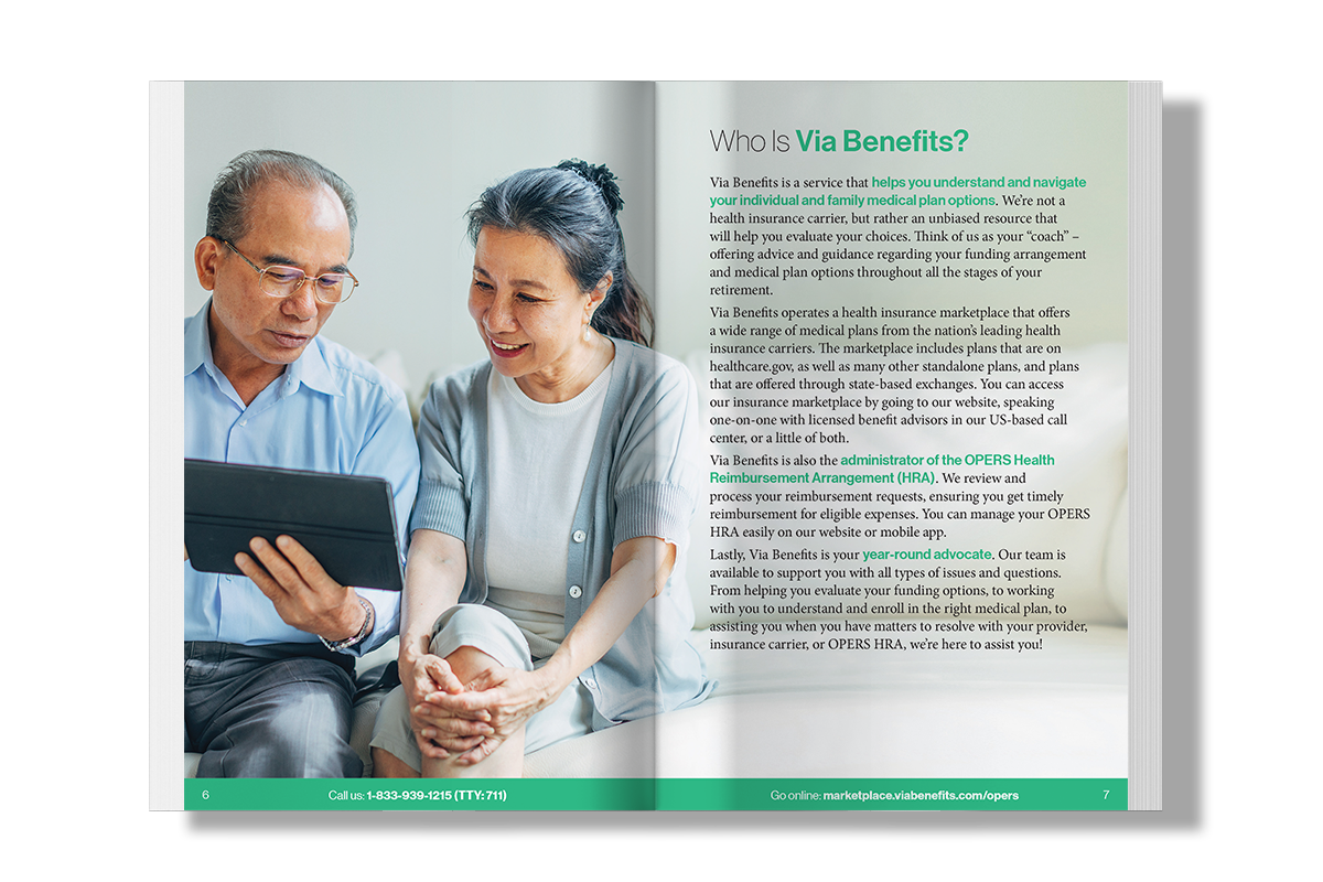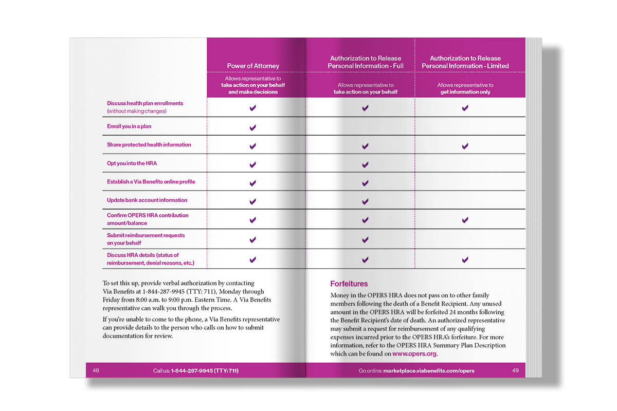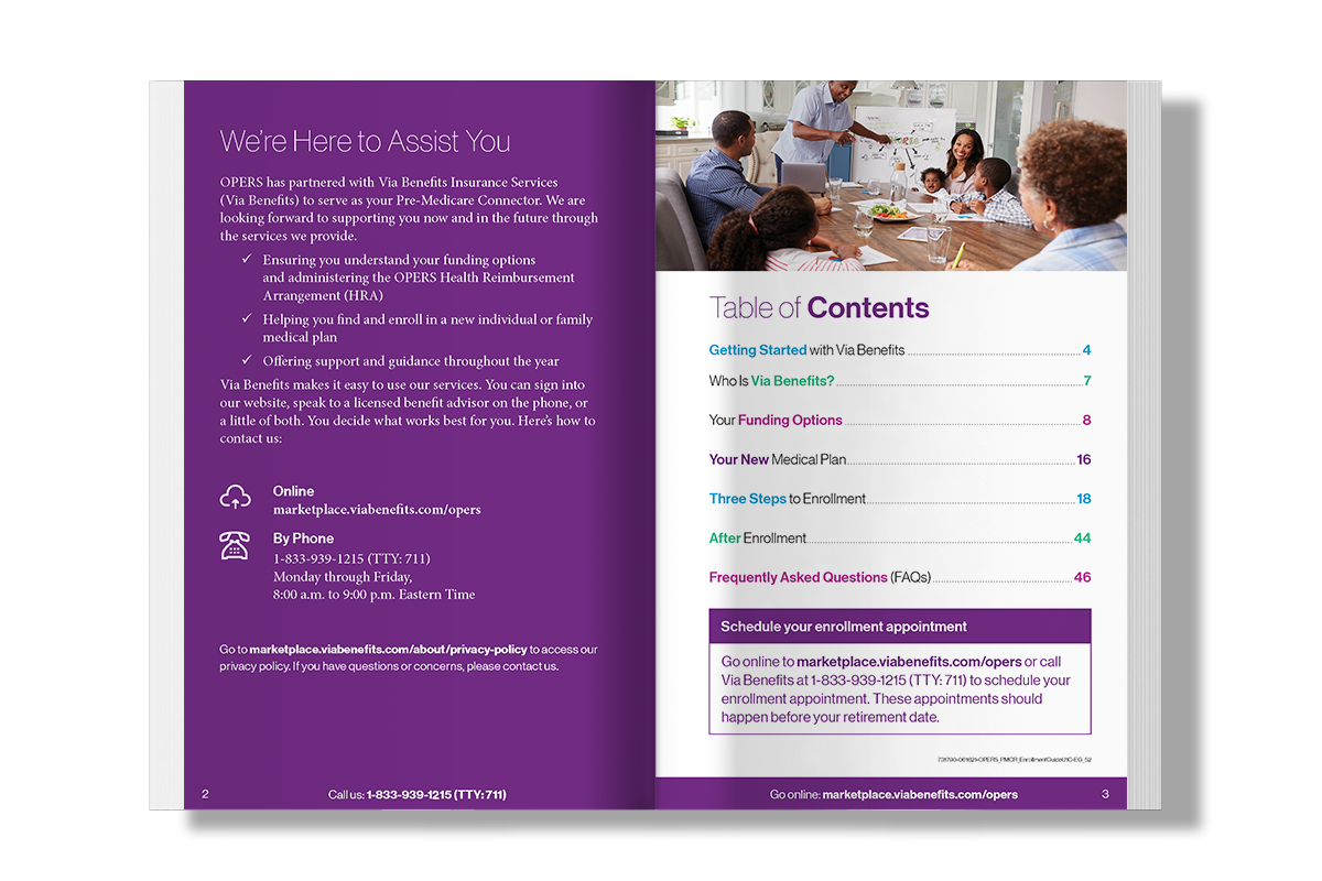 This project, along with the other OPERS (client specific) projects on my portfolio, are the first assets with the new revamped branding specific for this client. These three guides are distributed across a population in the hundreds of thousands to educate, prepare and walk the participants through the enrolling and funding process through Via Benefits. These guides are densely packed full of helpful information. The design of each section of each guide was meticulously thought out to balance the amount of inviting images/graphics with the text.