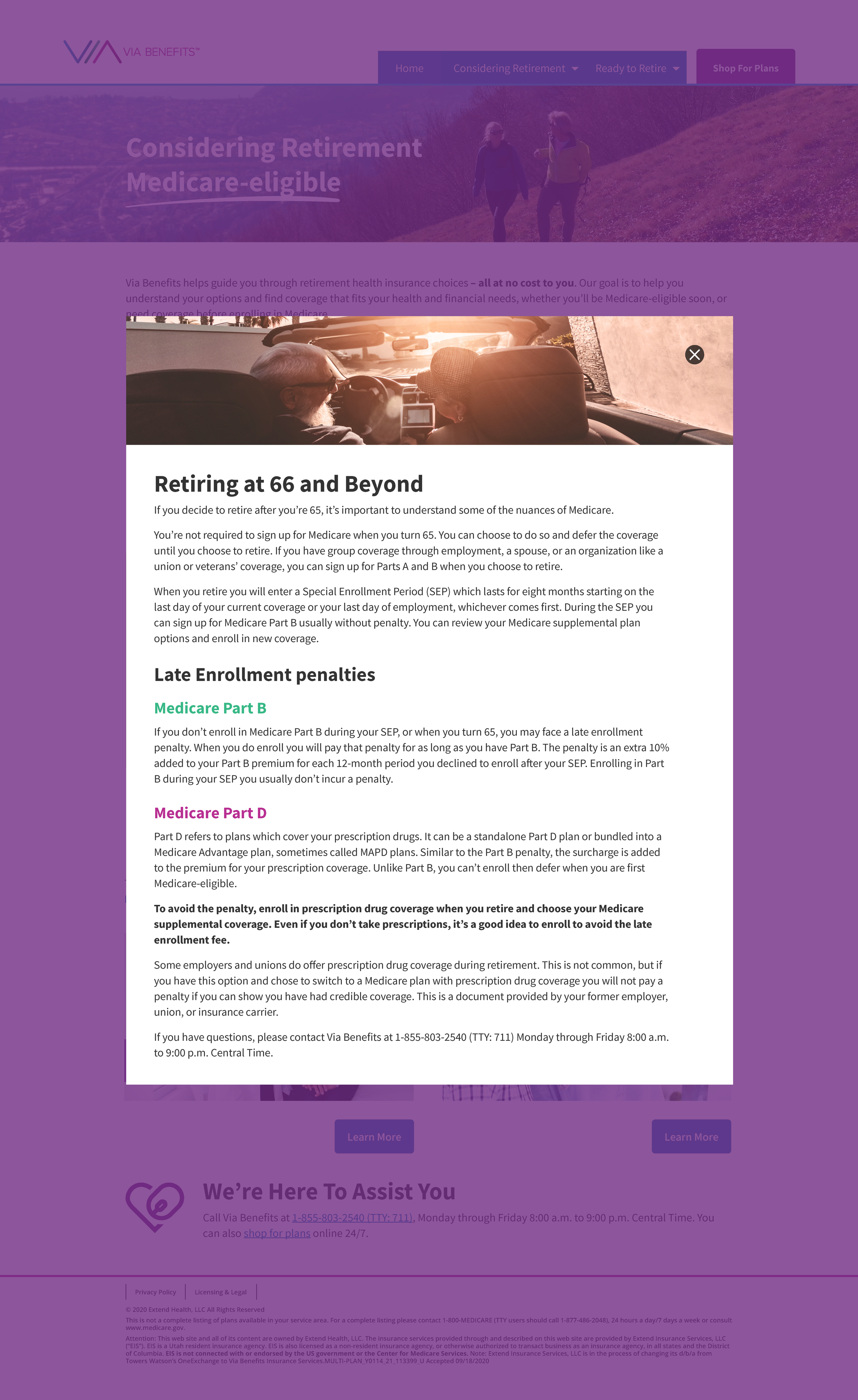 This site is for new clients to educate their participants on what Via Benefits offers. The site caters to a wide range of audiences. The goal is to educate, promote and serve as a gateway to get people interested in signing up with Via Benefits.